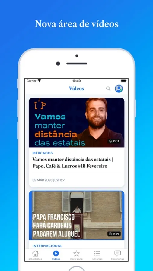 Leia notícias em tempo real, análises, artigos de especialistas e checagem de fatos.Receba alertas das notícias mais importantes.Personalize a seção Para Você, só com os assuntos do seu interesse.Assista a uma seleção de vídeos, mesmo com o app fechado.Siga os seus colunistas favoritos para não perder nenhuma análise.Salve as notícias e leia na hora que quiser.