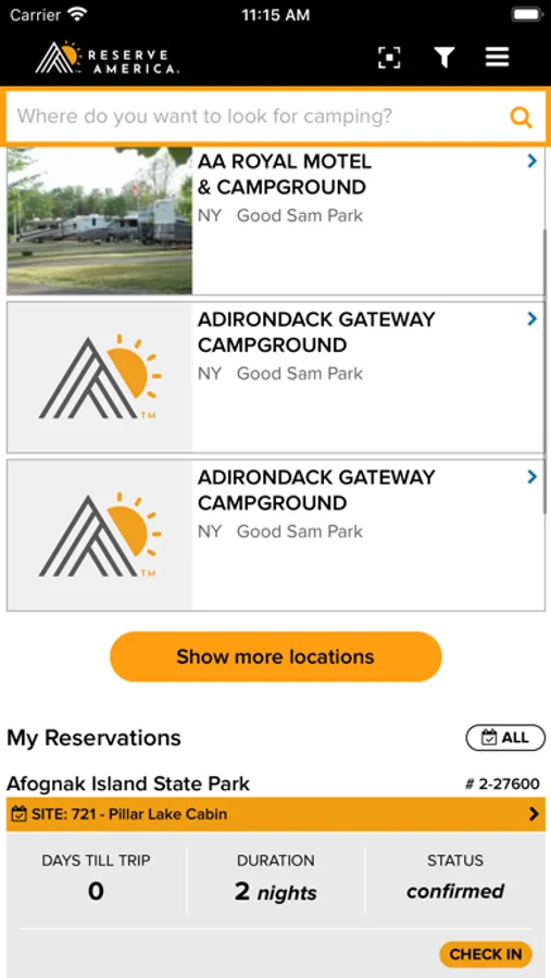 Looking for a campground for a future camping trip, or need to find a campsite now, for tonight? Use ReserveAmerica's mobile app to search for available camp and RV sites, yurts, cabins and more in state, federal, and private parks and campgrounds across the U.S. Search by location, date, or amenities, and display search results on a map... View campground details, reviews and photos... Even save your search settings to make finding your next campsite as easy as opening the app!