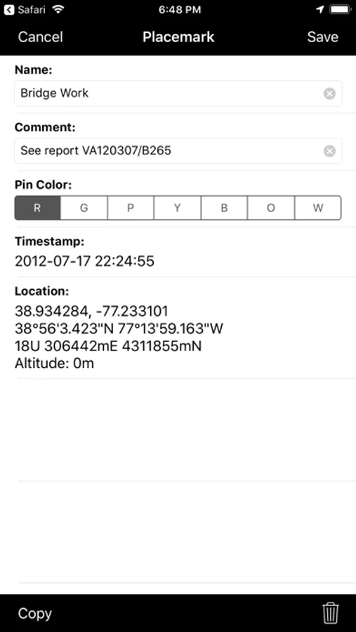Collect GPS location-based notes as KML Placemarks (location, name, comment and paddle color). View lat/lon data in decimal, DMS, and UTM formats. Import and export data sets as KML formatted email attachments.