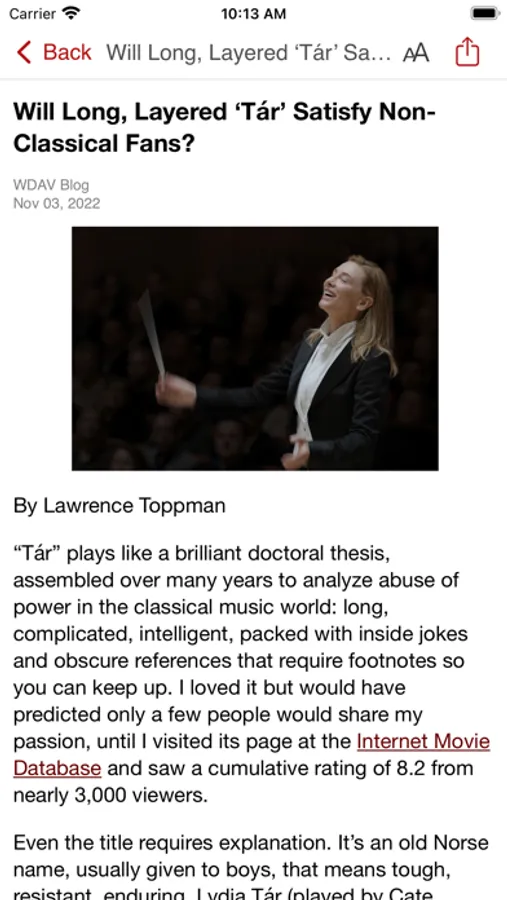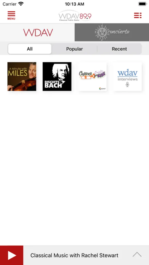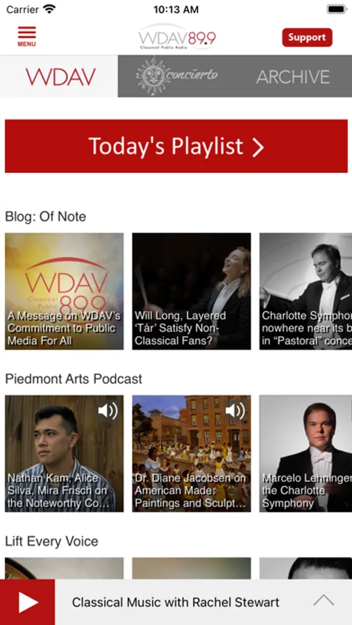 • Listen to WDAV while traveling. Start the app and push play. Your classical companion is with you wherever you go.