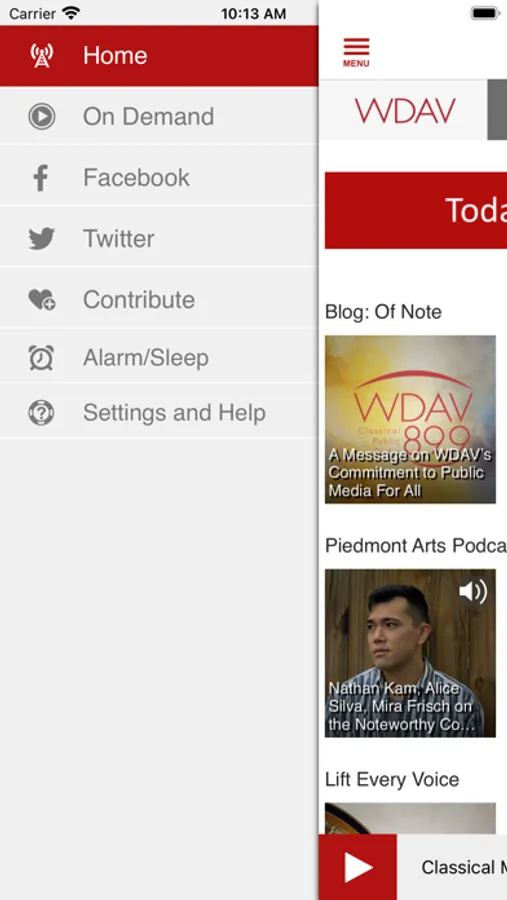 The WDAV Public Radio App allows you to listen to WDAV’s classical programming live. Explore On Demand content, learn more about our featured programs, and wake up to WDAV with our alarm clock feature!