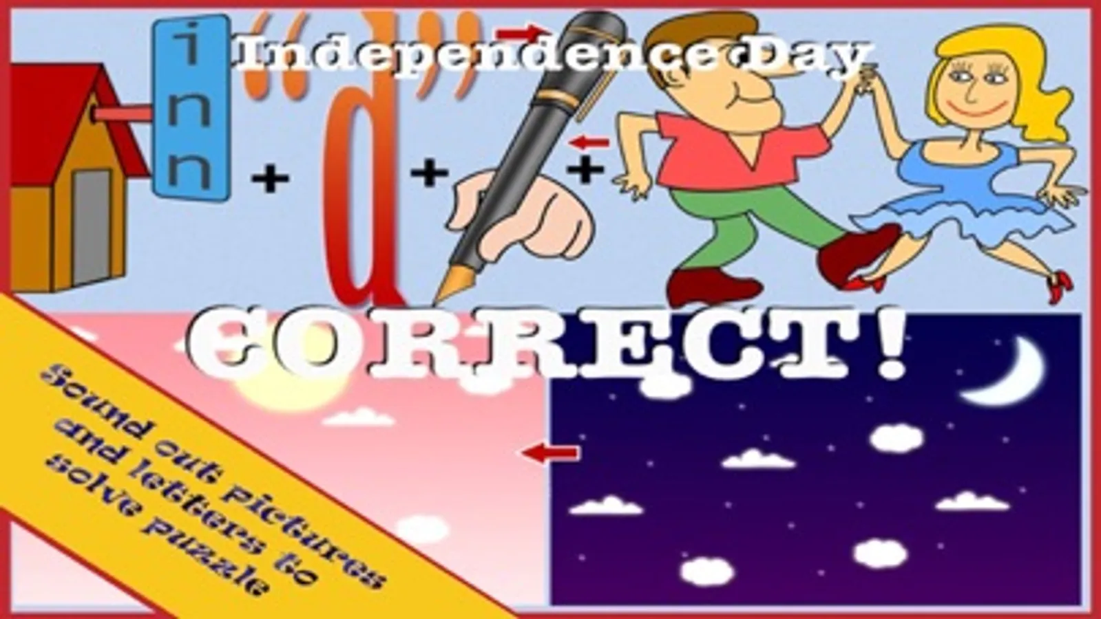 * Game board puzzle consists of pictures and letters that make up a phrase, song title, movie title, etc. You must correctly guess the puzzle title by sounding out the pictures and letters.