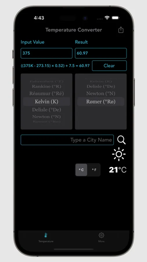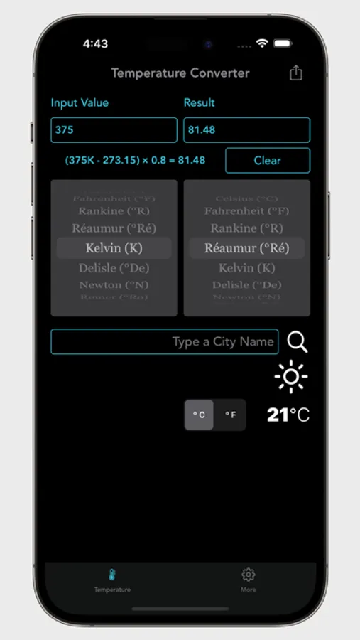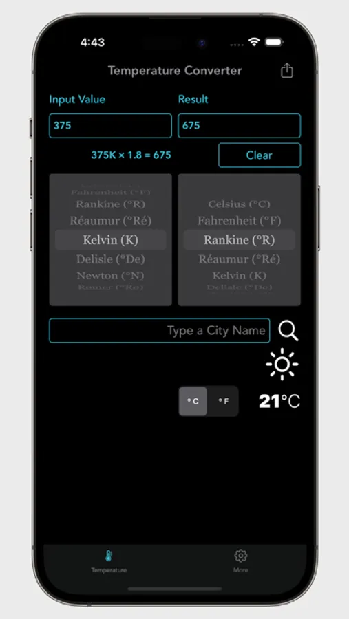 With the Temperature Converter, you can instantly convert values across a wide range of temperature units. Whether you need to switch from Celsius to Fahrenheit or convert Kelvin to Rankine, this app provides the formulas and flexibility to make conversions smooth and accurate.
