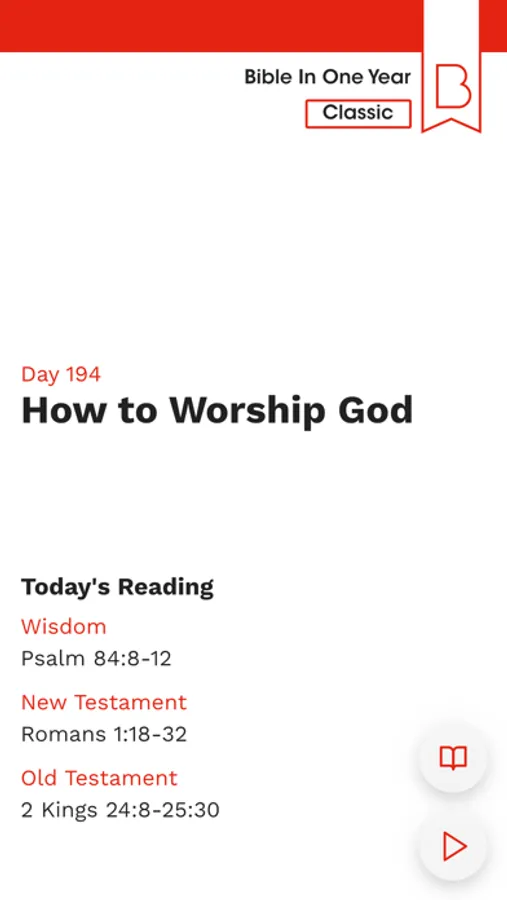 With over 1 million users worldwide, Bible in One Year is a daily Bible reading plan taking you through the entirety of the Bible in 365 days. Each daily reading includes passages from the New Testament, the Old Testament and Psalms or Proverbs. Alongside the readings, Nicky and Pippa Gumbel, pastors of Holy Trinity Brompton church in London and pioneers of Alpha, share their thoughts on the passages and prayers for the day.