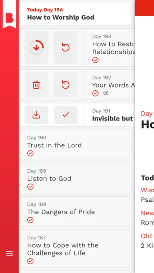 - Bible in One Year allows you to sync all your readings for offline use so that you never miss a day