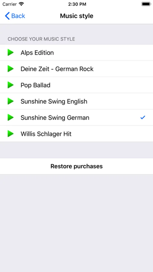 ● SongCocktail Free includes the music styles "Alps Edition“ "German Rock“, „German Pop Ballad“, "Swing Edition German“, "Swing Edition English“ and "German Schlager“.