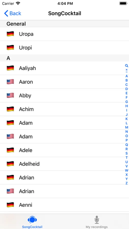 ● You can choose from more than 800 German and 200 English Names from Aaliyah to Zita and Aaron to Zoe, spoken by the German host and dubbing actor Nick Benjamin, known as the "Voice of the ZDF“, one of the most popular German TV networks. Also available are German terms of endearment and designations like "Chef".