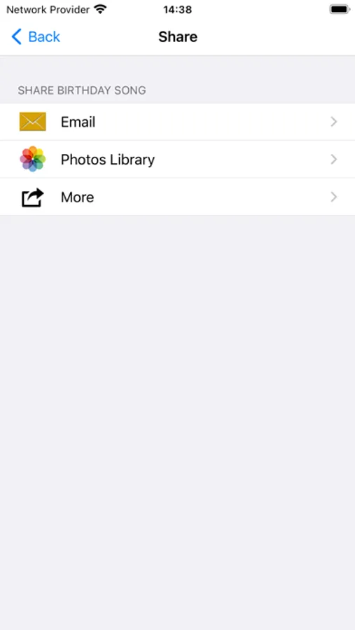 ● Save a birthday song to the Photos Library of your device to send it with any app.