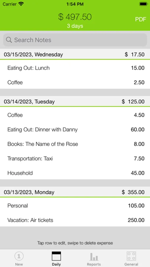 In lite version you can enter as many expenses as you want but you can view and analyze expenses for the last three days only. Your expenses are stored on your device and if you decide to buy full version of Pico Spend, all entered expenses can be easily transferred from lite to full version via iCloud.