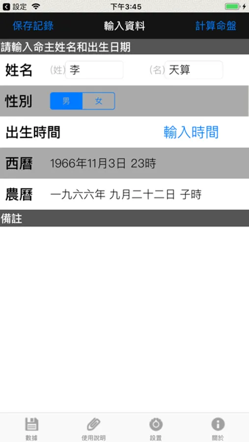 -- 命例资料支持公历,农历及四柱输入;