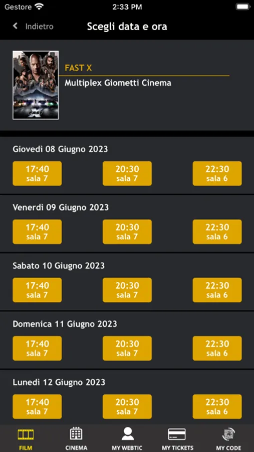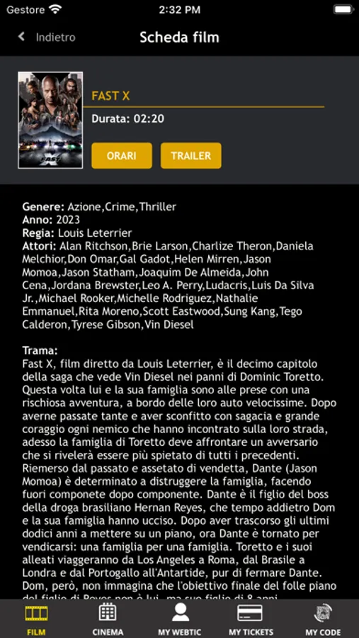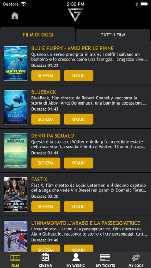 L’applicazione vi permetterà di scegliere la regione, il cinema, il film, visualizzare gli orari e prenotare e/o acquistare da mappa i biglietti.