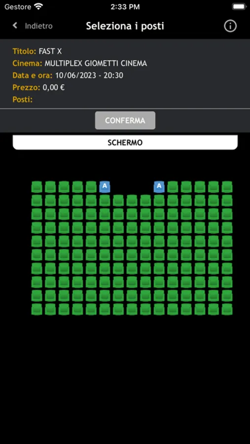 Potrai prenotare un massimo di 8 posti al giorno, anche per film diversi.