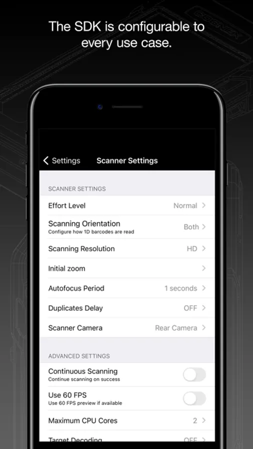 Simplicity - The SDK’s high-level API make adding barcode scanning to your application simple. But don’t worry: the SDK is quite flexible and will allow the programmer to customize the user experience and tune scanning features.