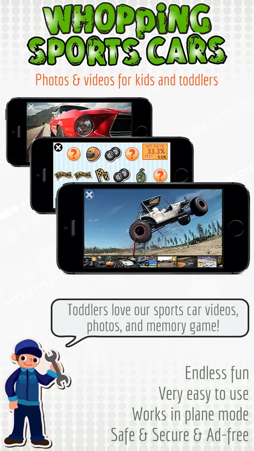 Vroom, vroom! Does your little one love sports cars? Whopping Sports Cars offers up to 30 minutes of videos and an awesome sports car memory game all in one toddler-sized app for iPhone or iPad. It's made for little fingers (ages 1+) to explore on their own, and works without an internet connection so you can take the fun anywhere!