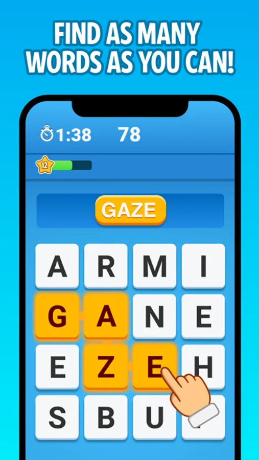 Ruzzle is a fast-paced and addictively fun word search game. Race against the clock and stretch your brain to its limits as you search and find as many words as you can in the time window.