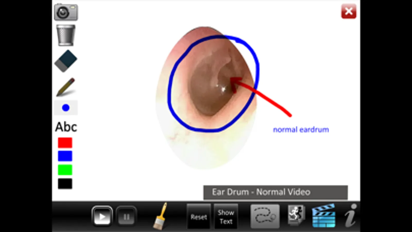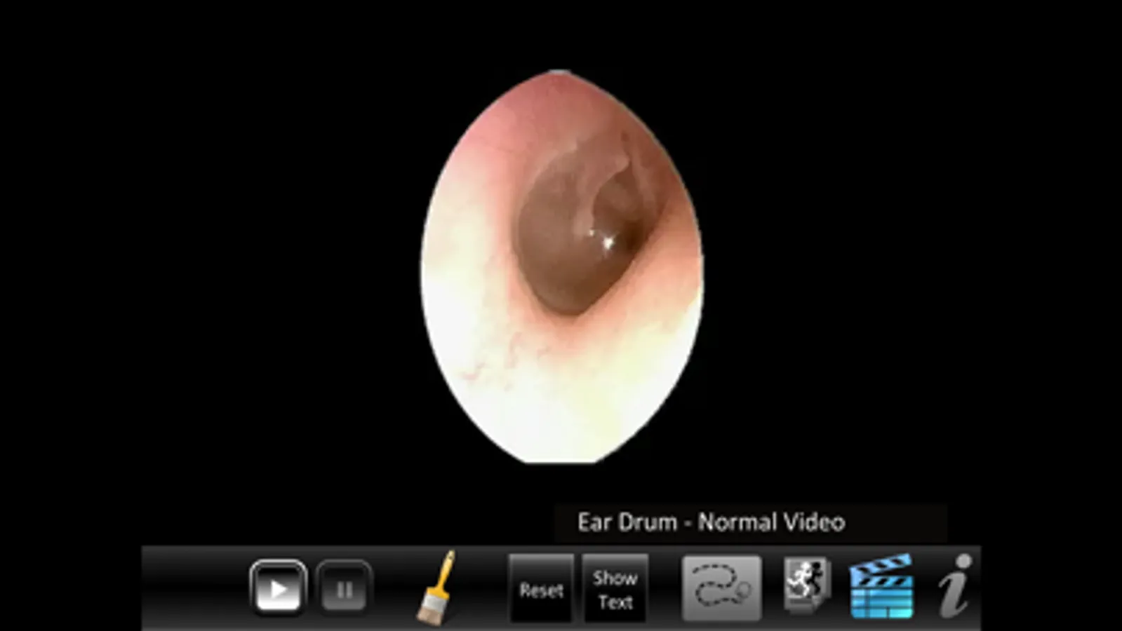 • Video: a large close-up video of a real ear drum. Stop and pause button for video.