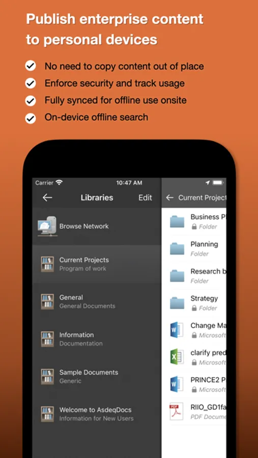 • Files and documents are automatically synchronized between the enterprise and the mobile devices - Employees always have the latest files