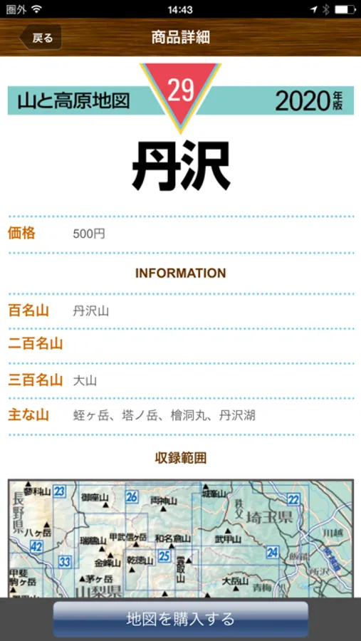 ・書籍地図「山と高原地図」の登山地図を収録しています(周辺図・冊子掲載情報などは未収録)。収録内容はアプリ内でご確認ください。