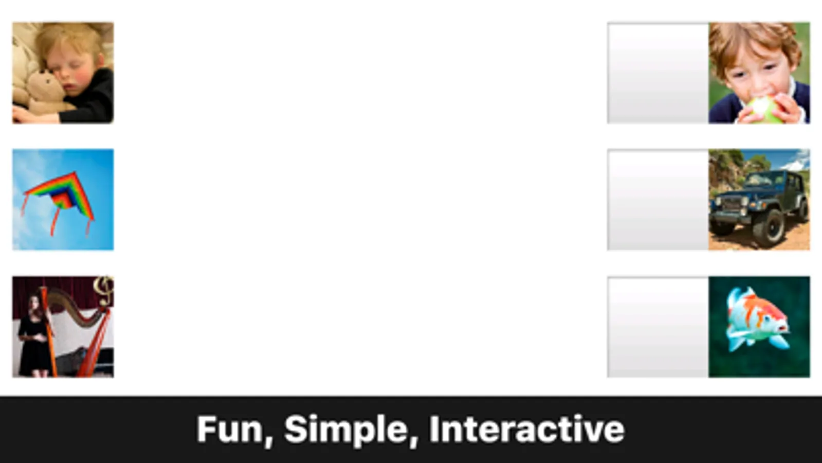 Our "Rhyming Words" application was created using 200+ gorgeous pictures that are sure to keep kids interested and engaged. In this application, children will be presented with one or eight pairs of items and they have to figure out which items rhyme. The best way to play this game with a child is to sit down with them and have them explain to you the reason / thinking of why two items should go together. This way, the game can act as a wonderful interactive tool to develop both language and critical thinking skills.