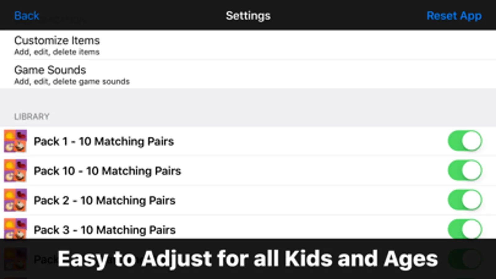 ● Customize game sounds - can even customize the game and success sounds so that your little one hears your words of appreciation
