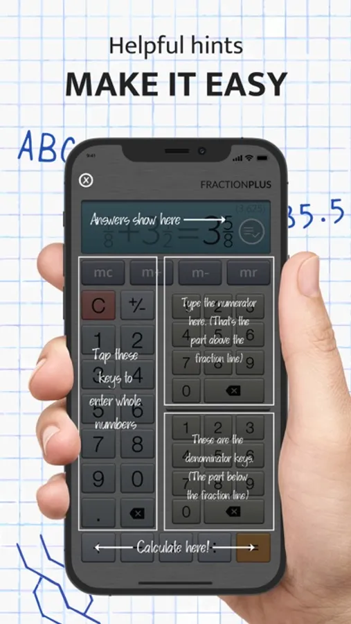 It's an easy-to-use fraction calculator with a large display and big buttons.