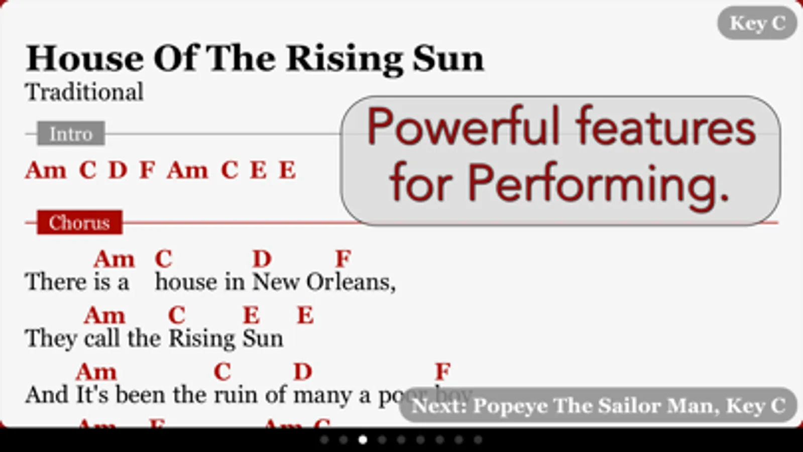 No heavy folders or music books. Your iPhone or iPad is all you need for chords, charts, and tabs. Organize songs into set lists. Transpose songs to any key with a single touch. Over 1000 chords included.