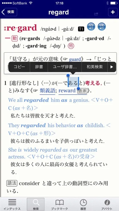 充実した語義の解説・発音音声・豊富な例文・TOEIC®頻出語句の表示に加え、フラッシュカード、iCloud利用のブックマーク、SNSへの投稿など学習に役立つ機能が満載です。