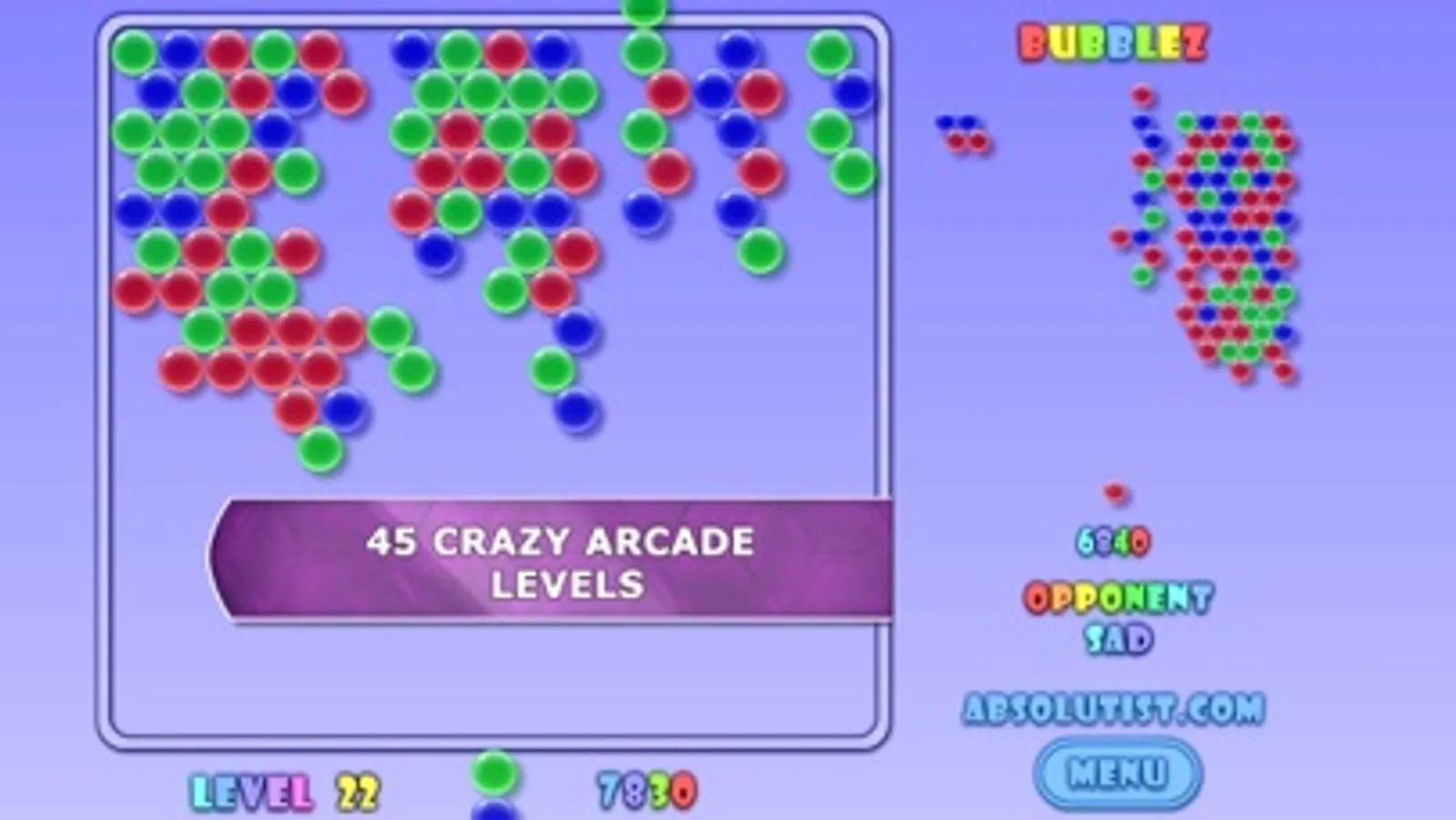 This multiplayer bubble shooter is a perfect time-killer and a challenging game for all Match 3 or Marble Popper fans. Make the groups of 3 or more bubbles of the same color to clear the play field. Compete online in multiplayer mode and gain bonus score every time you win! With 45 impossible levels Bubblez: Bubble Defense provides almost unlimited play time!