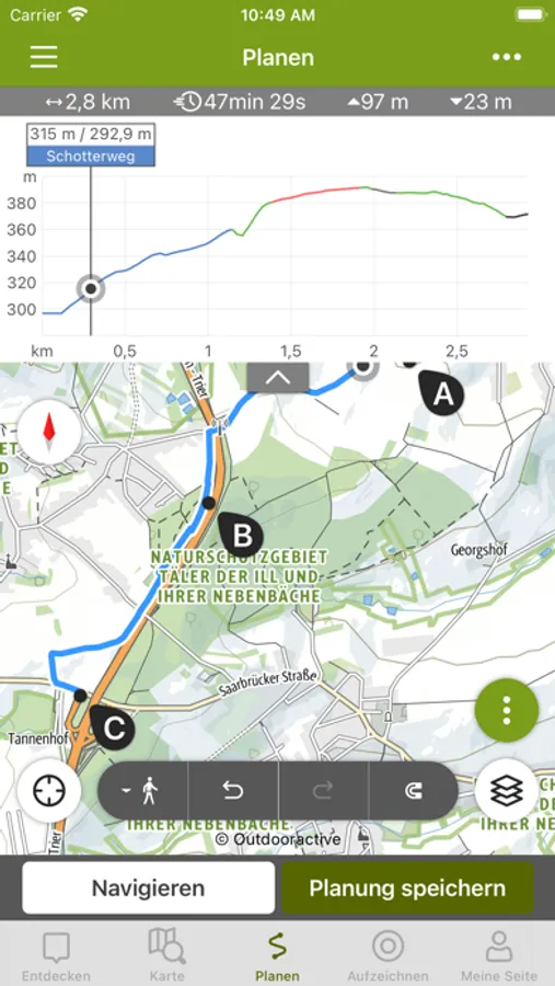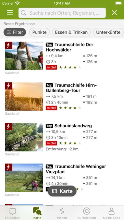 Alle Touren und die Karte können Sie selbstverständlich bequem im WLAN-Bereich offline speichern und benötigen somit kein Mobilfunknetz im Gelände auf Ihrer Tour! Sie können auch eine eigene Tour aufzeichnen und diese dann später an Freunde und Familie senden.