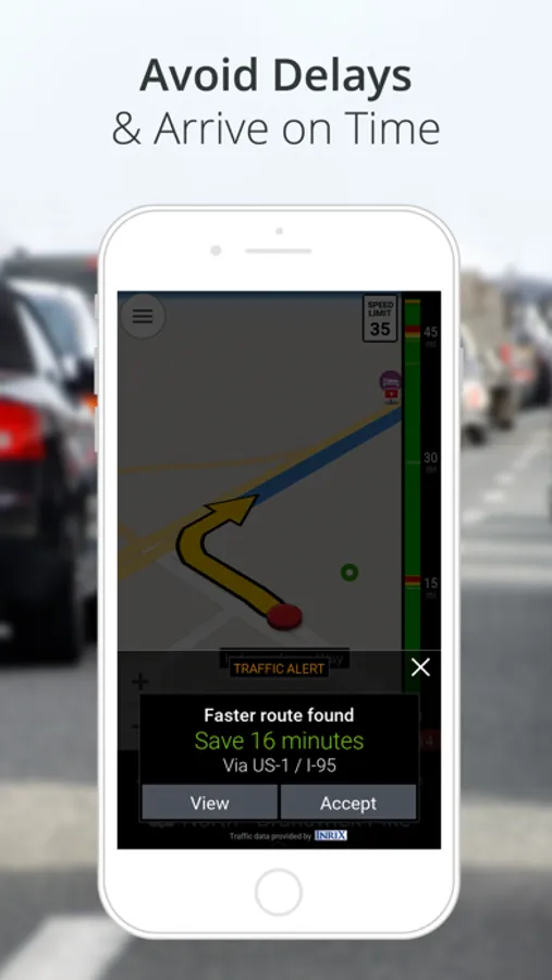 • Avoid delays with real-time traffic and automatic rerouting around congestion*