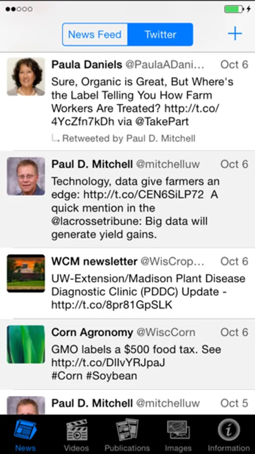 The built in news feeds are from the University of Wisconsin IPM specialists blogs, Twitter, and Youtube channels. However, you can customize the app to use feeds from your own region. The IPM pest picture search uses a national database of over 200,000 images from all areas of the country.