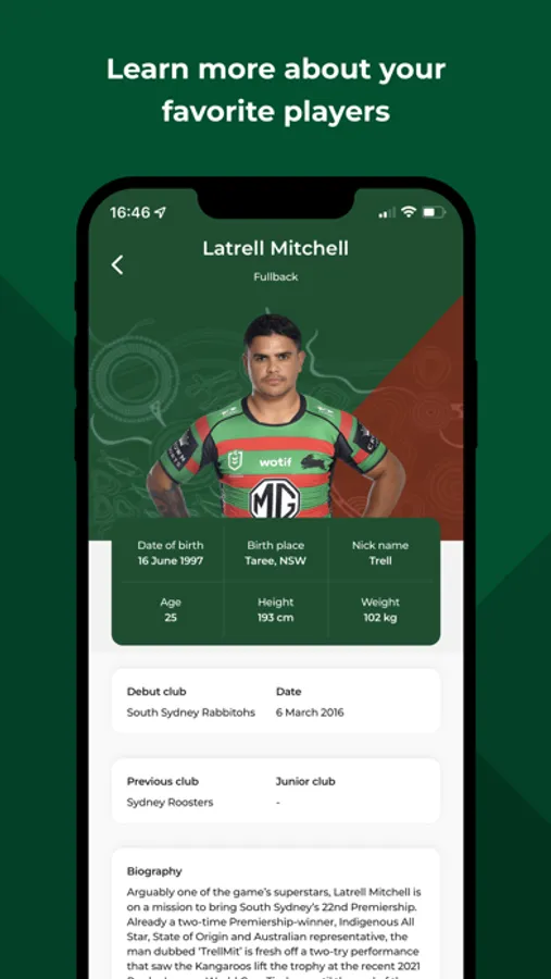 Welcome to the brand new Official South Sydney Rabbitohs app. Our completely redesigned experience gives you access to your favourite team and favourite players - plus you'll get breaking South Sydney Rabbitohs news, live scores, stats, game day information and match highlights. It's everything you need to know about the South Sydney Rabbitohs, no matter where you are.