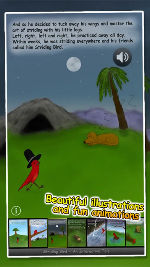 "Striding Bird - An inspirational tale" is an original animated and interactive story about a young bird finding his way in the world.