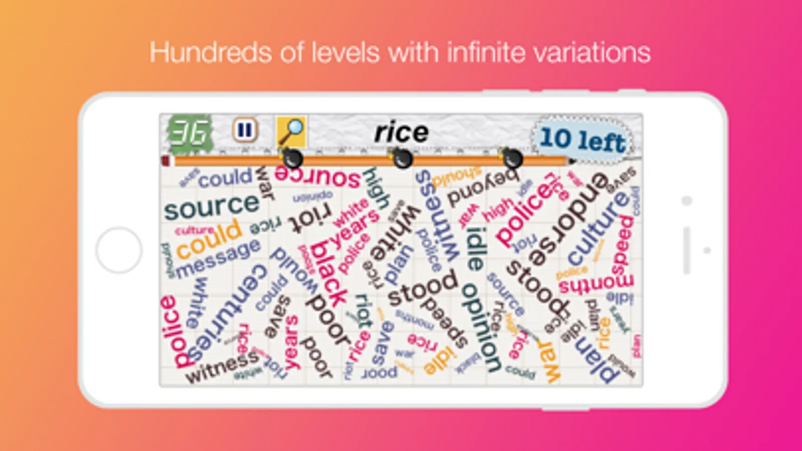Find words in beautifully designed word clouds. Improve your vocabulary and visual scanning ability! Featured by Apple as a "Staff Favorite" and "New Games We Love"