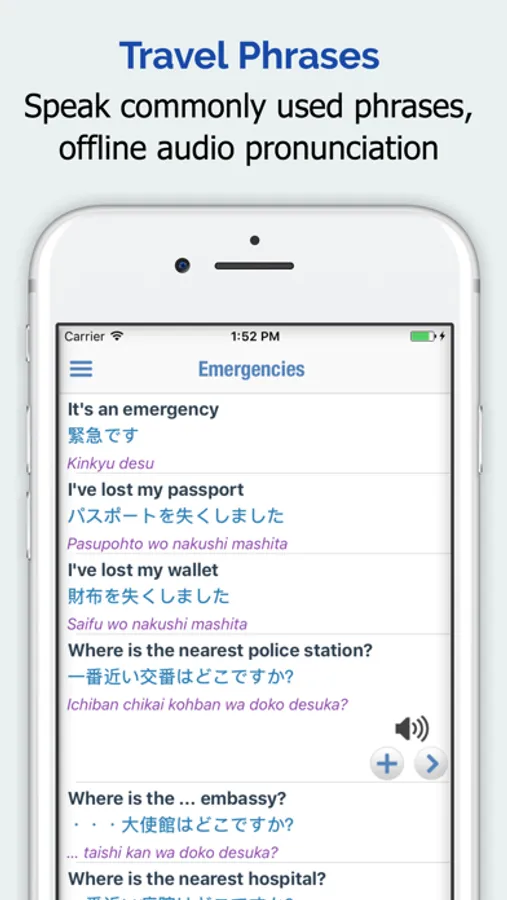 • Phrase book, Phrase of the day and Phrase Card helps to speak common phrases