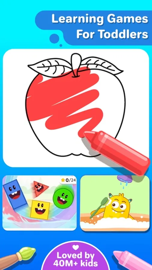 Make learning fun with SplashLearn toddlers' learning app, the educational app that teaches kids aged 1-5 how to count numbers, trace letters, master shapes, and basic PreK-Kindergarten skills.