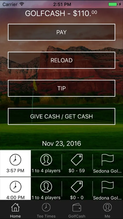 The Sedona Golf Resort app makes paying for your tee time, ordering from the beverage cart or buying a round of drinks after golf fun and easy! The best part is you get Bonus Cash when you do. It’s quick and easy to send your friends GolfCash as well and you may get Bonus Cash when you gift to someone else.