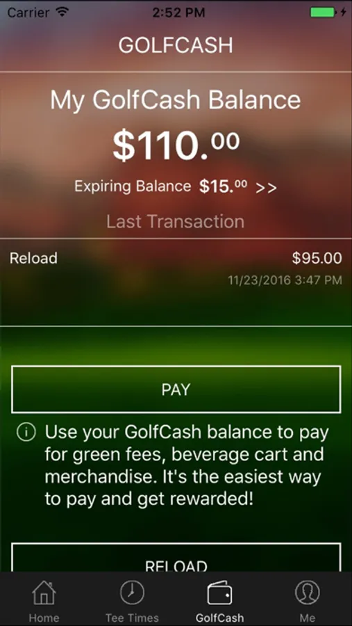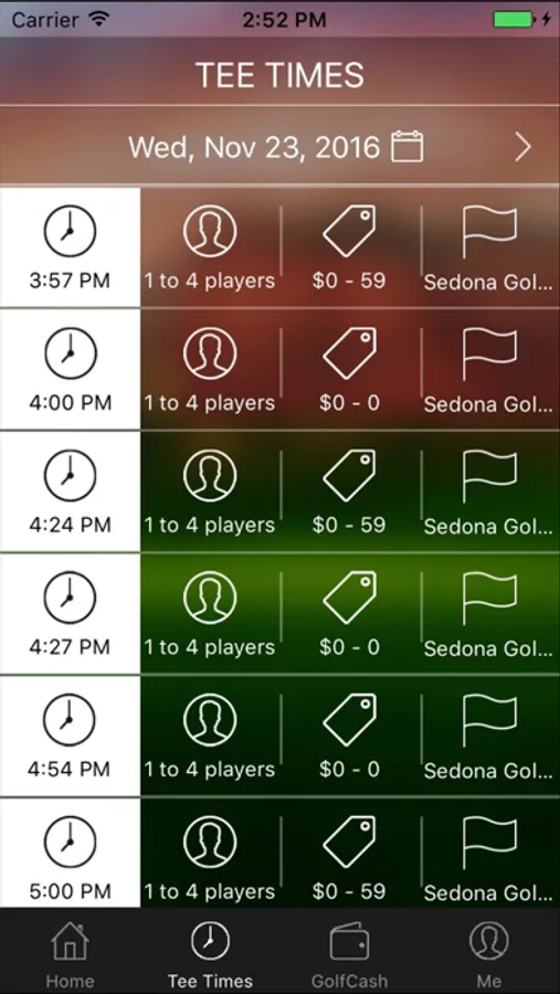 Booking a tee time is as easy as 3-taps and once you've setup your account the app will remember you so its always 3-taps. You can always look up your reservations and cancel reservations if you need to as well. Plus view and redeem your rewards or promotion codes anytime.
