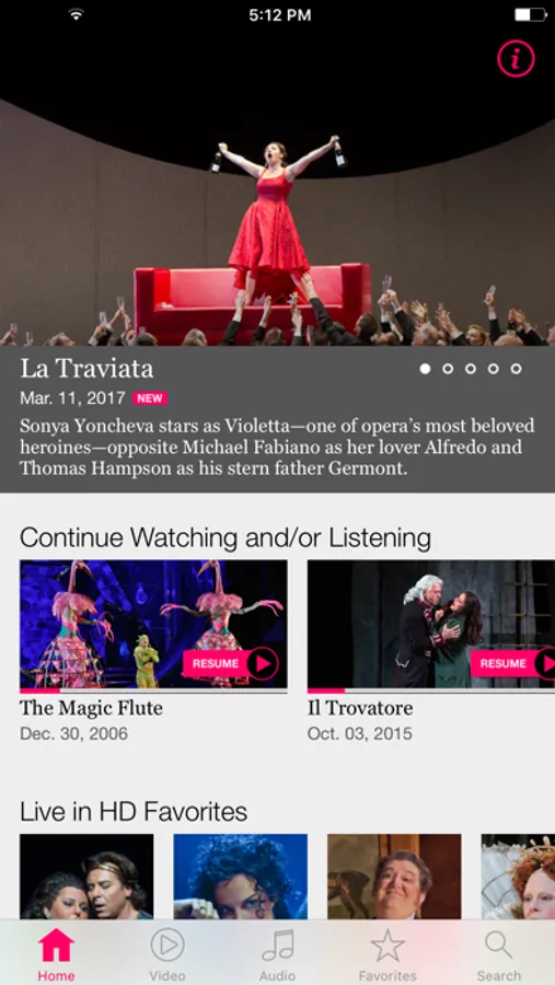 All Met Opera on Demand videos include English subtitles, and many recent HD performances also include subtitles in French, German, Italian, Portuguese, Russian, Spanish, and Swedish, as well as English Closed Captions (CC.) Subscribers can use AirPlay to watch all videos with the full offering of multi-language subtitles on their TV via Apple TV. New operas are added every month. The app also offers a “Continue Watching and Listening” feature that allows you to stop at any time and resume right where you left off whenever you’re ready. You can bookmark your favorite performances for easy access at any time as well.