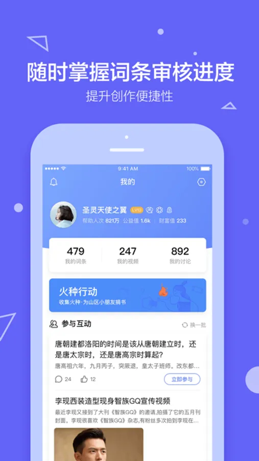 优化个人中心,可在此管理个人信息,查看词条、讨论审核状态,并参与社区互动。