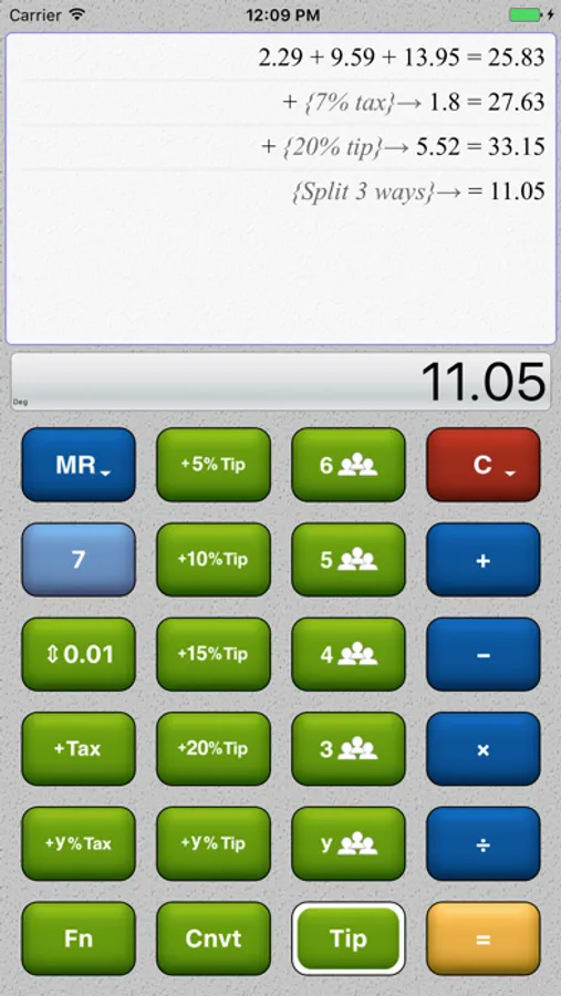• Full tip calculator mode - taxes, tip, per-person amounts