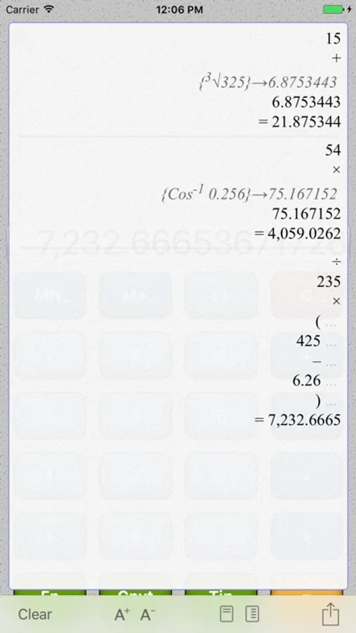 • Zoomable History Tape - Tap the history tape to expand for more detail, change the font size, copy contents to clipboard, or forward as an email. View as single-lines to save space, or use multi-line view for more detail.
