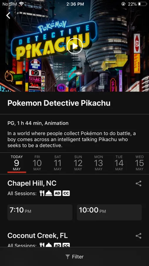 Watch movie trailers, and find out where and when the movie you want to see is showing, using date and cinema filters.