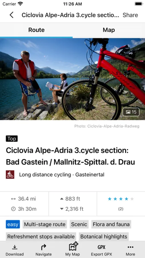The tours/stages can be saved locally as needed (for example, when you are abroad, in areas with a weak signal, or when data roaming charges are simply too expensive) including all tour details and the relevant maps.