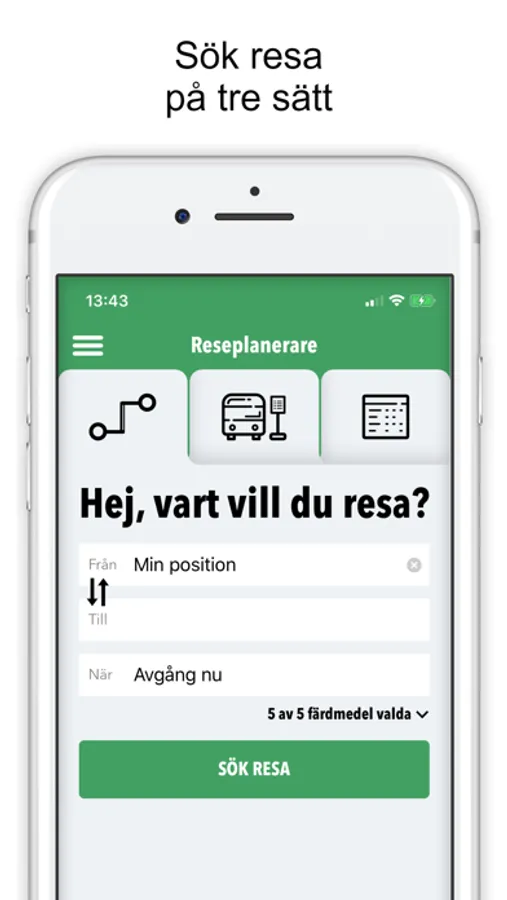 Reseplaneraren hjälper dig att söka och köpa bästa resan mellan A och B.