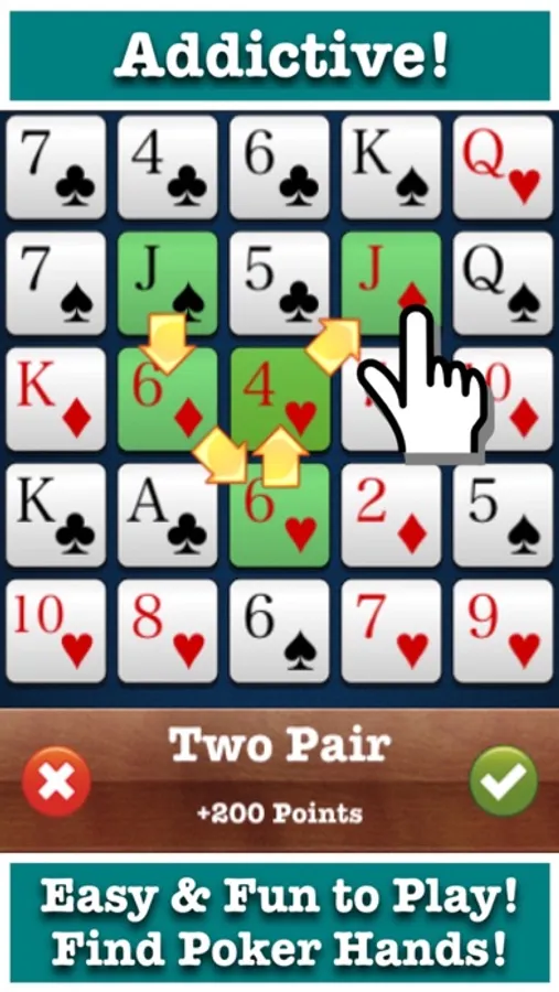 Poker Jewels™ is a fun puzzle game where you try to make the best five-card “hands”, such as Two Pair, Full House, or even the rare Royal Flush!