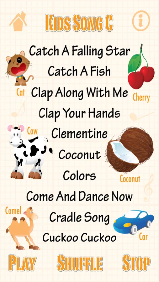 - 10 songs for children with meticulously designed theme picture, lyrics and 6 vocabularies.