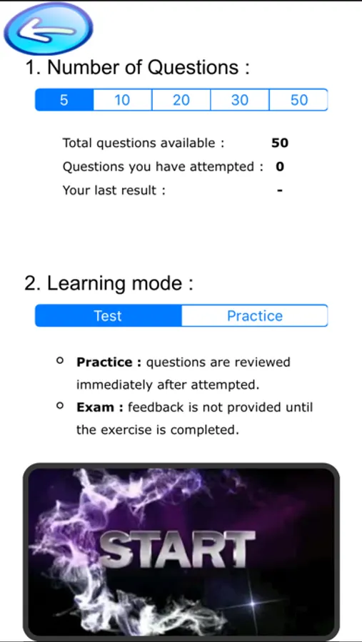 -Practice mode and Exam mode.