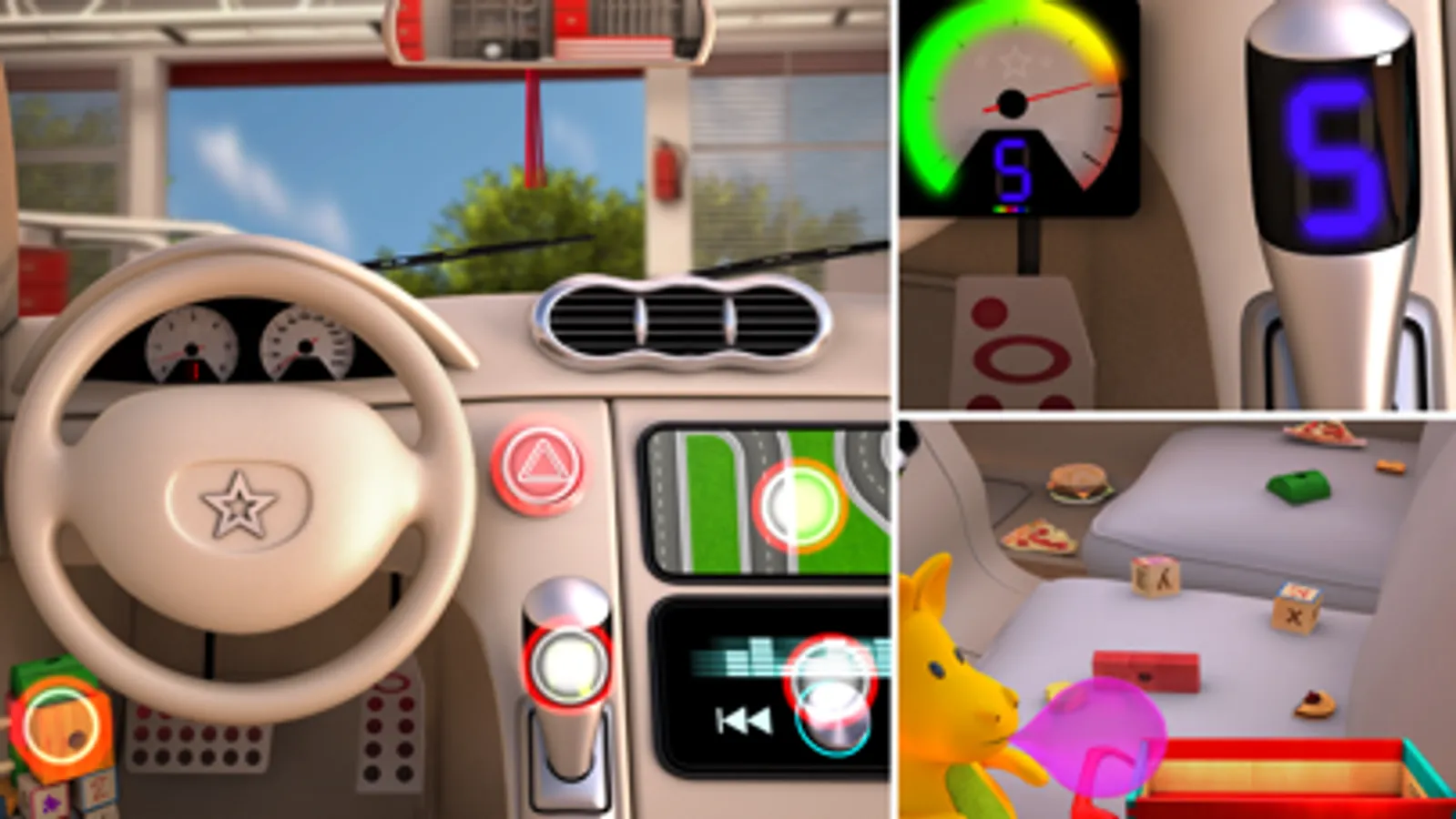 Be creative, also see what happens if you try to fix a car in a wrong way – wipe the windscreen with ice-cream, fix a hole with a bottle cork or make up your own model of an exhaust pipe. See which pump works best for the car tyre, what things look like through a welder's mask, write numbers on the display and see how car gears change. Where do your radio sounds go and who helps you clean the car? Press the button! Yes! Press all the buttons! and see what happens when the current flows. Find the way to the ice-cream store. Bolt on the wheel. Put the brake together. And more...