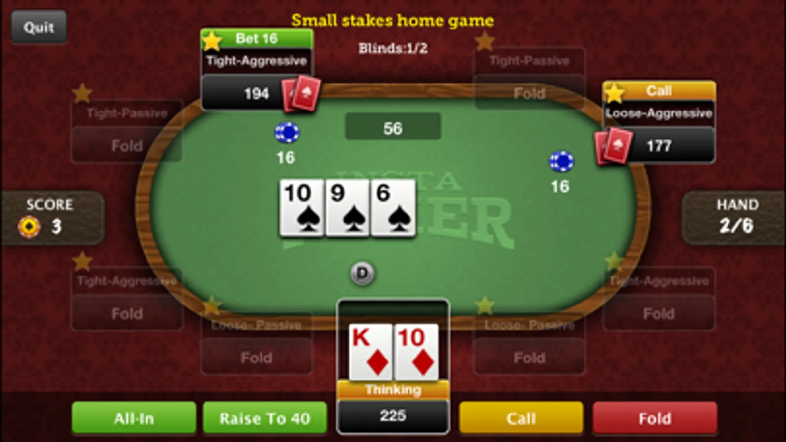 Win and score by making quality decisions, not by winning chips.